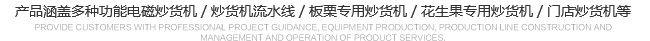 公司產(chǎn)品涵蓋多種功能電磁炒貨機(jī),炒貨機(jī)流水線,板栗專用炒貨機(jī),花生果專用炒貨機(jī),門(mén)店炒貨機(jī)等。 規(guī)格品種齊全、產(chǎn)品質(zhì)量穩(wěn)定可靠,產(chǎn)品遠(yuǎn)銷(xiāo)國(guó)內(nèi)外。