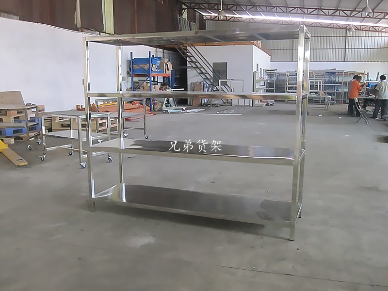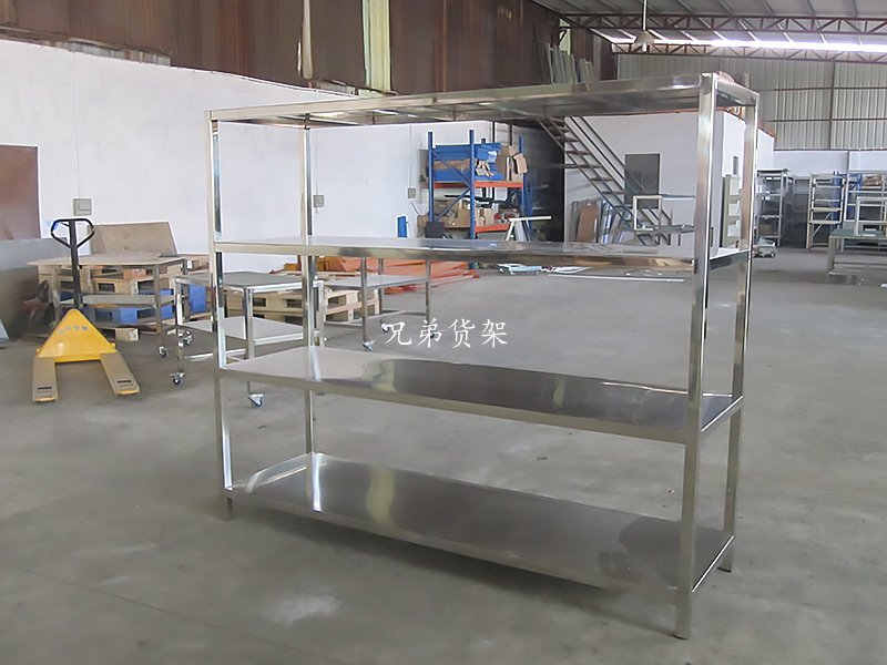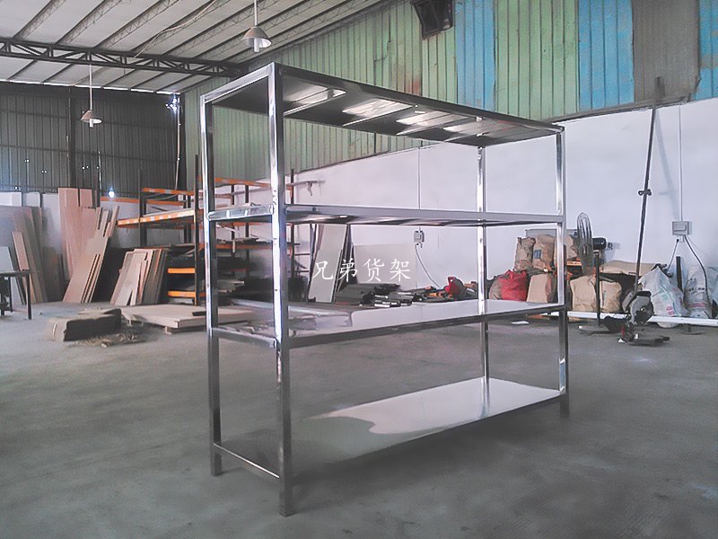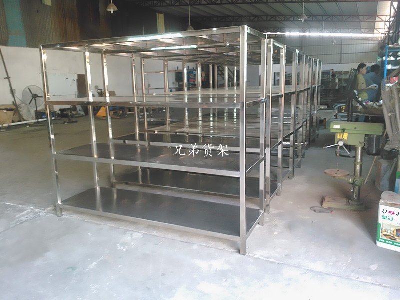 提高空間使用率,需要對營業廳或倉庫進行置辦和調整貨架、柜臺等主要的商品陳列器具。使營業廳或倉庫的面貌煥然一新。不銹鋼貨架可選用201或304不銹鋼材料、支架采用38*38不銹鋼方通制作。焊接美觀,受重力強。