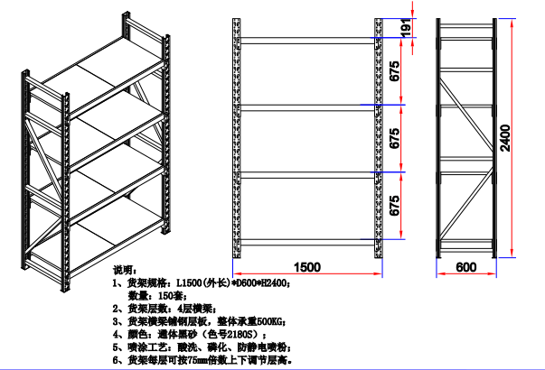 上圖貨架是我司給深業上成店做庫房貨架,根據整個現場的裝修風格來設計貨架,層數為標準四層,歷15天的生產時間,貨架終于生產好了,看整體效果是非常不錯的,高端大氣上檔次,下面介紹一下貨架:L1500*W600*H2400  數量:150套