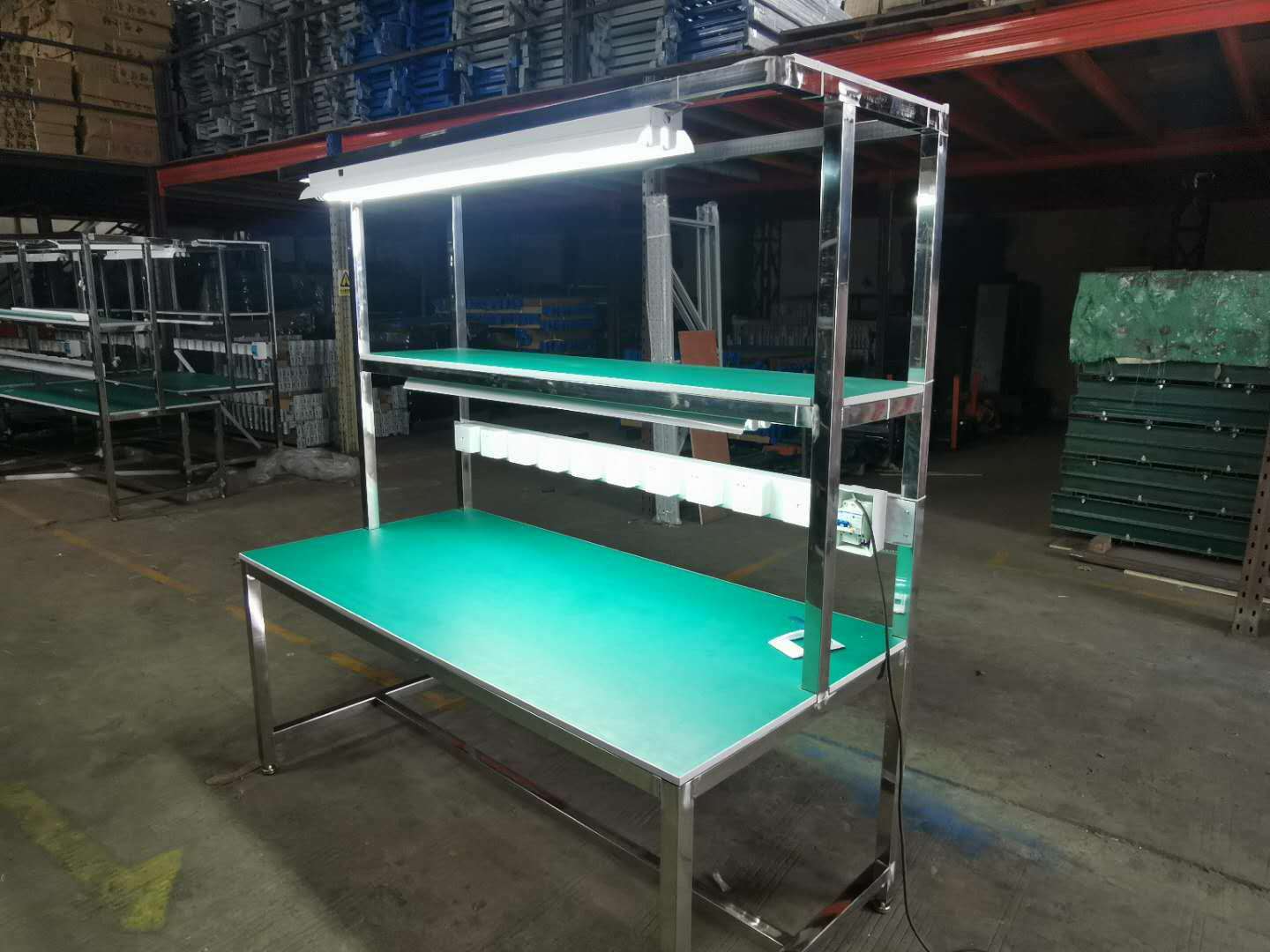 下圖是我司為廣東東莞一家工廠定做的帶燈流水線防靜電工作臺,大大提高了生產車間的工作效率及產能: