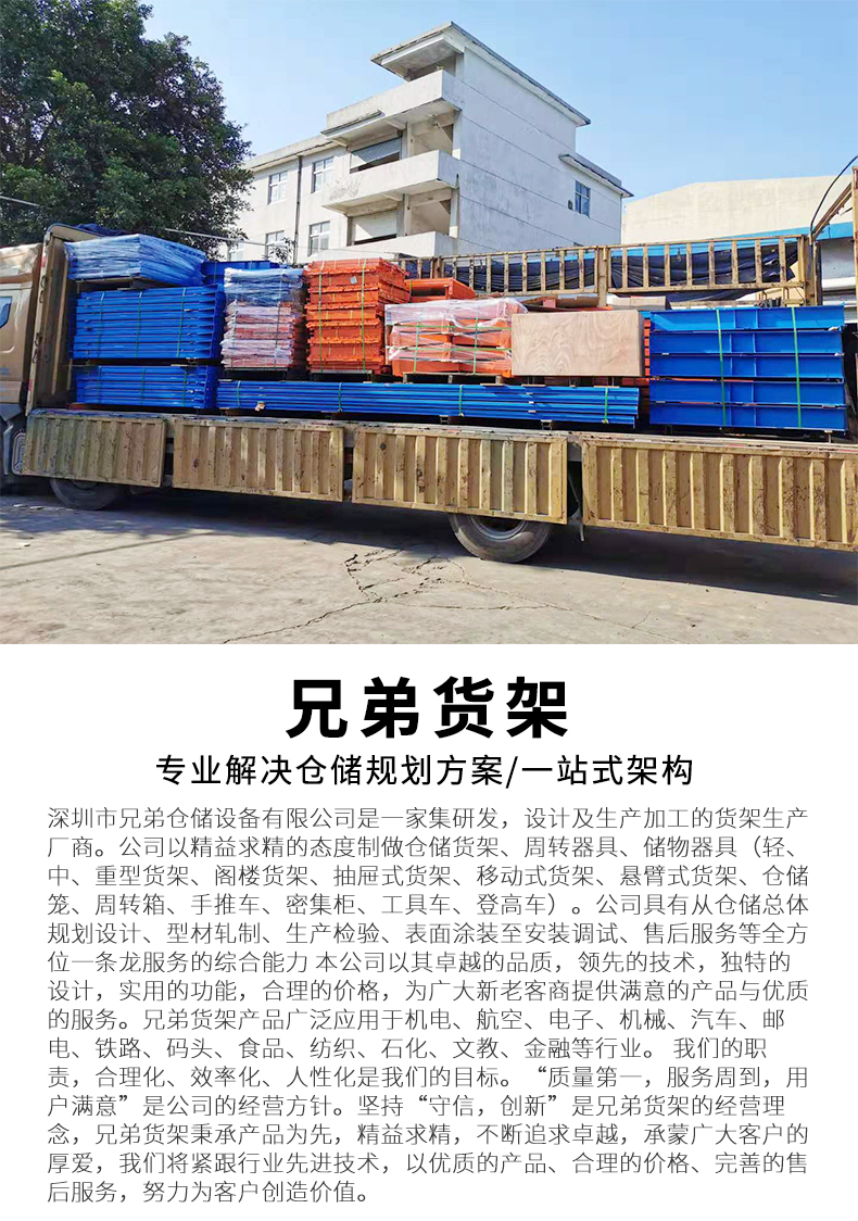 深圳兄弟倉儲貨架專業生產重型貨架,懸臂架,閣樓式貨架,輕中型貨架,模具貨架.根據客戶的需求點出發幫客戶解決貨架選款,貨架尺寸,貨架 承重,貨架定制等問題,免費上門測量CAD方案,是一個貼心,省心,價格實惠的貨架廠家,在線客服或電話:18126304965 微信同步 我們隨時為您服務! 五年質保服務,保修期內因產品本身質量問題,承諾免費維修或更換